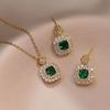 Temperament Heart-Shaped Set Necklace Green Zircon Inlaid Titanium Steel Clavicle Chain Intracranial Gold Electroplated Titanium Steel Clavicle Chain