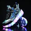 Patină cu rotile duble pentru copii, cu roți retractabile automate, pantofi sport, încărcare USB, lumină LED, pantofi sport