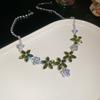 Zircon Flower Leaf Water Drop Pendant Necklace Earring Set Light Luxury Heavy Industry Collarbone Chain High-End Jewelry