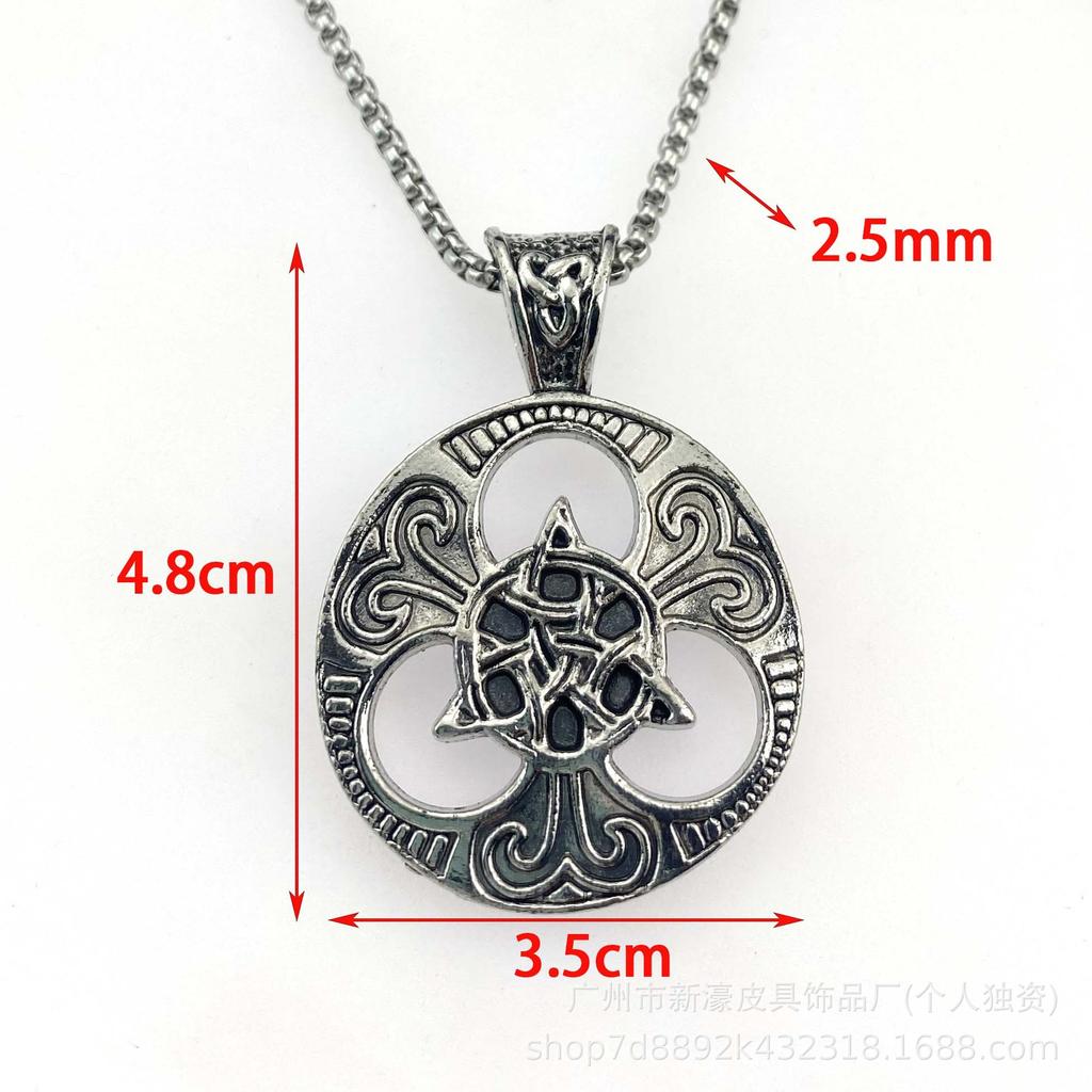 Colier cu pandantiv medalion rotund cu nod celtic concentric, punk, la modă, pentru bărbați, auriu, lanț pulover, accesorii
