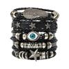 5pcs Evil Eye Wing Star Diy Braided Punk Style Bracelet Set, Featuring Pu Leather And Beads