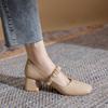Balerini din piele naturală pentru pantofi de damă Huizhou strugure mamă toc gros același pantofi unici damă primăvară nou tocuri înalte damă