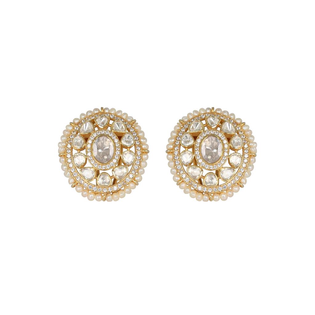 Cercei Kundan placați cu aur Argint Sterling 925 Bijuterii Polki lucrate manual Cercei cu moissanit Bijuterii pentru femei indiene