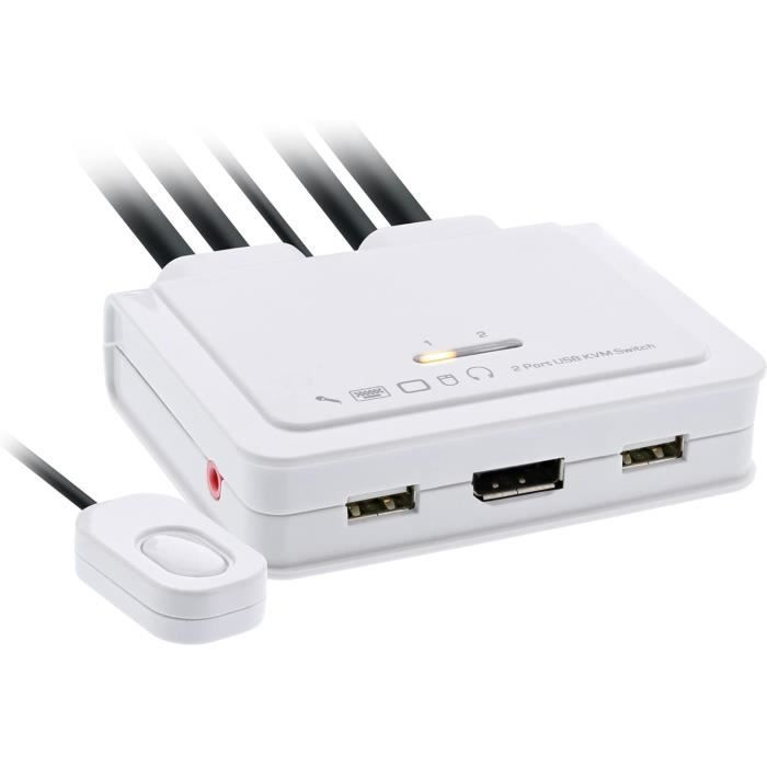 Commutateur kvm - inline - 63613i - usb displayport 2 voies - résolution 3840x2160 - blanc