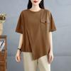 Dimanaf 2025 Nou Tricou de Vară pentru Femei Mărimi Mari Gât O Mânecă Scurtă Larg Topuri de Bază Casual Tricou Asimetric