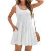 Summer Women's O-Neck Pockets Dress Casual Sleeveless Vest Mini Dress Beach Holiday Solid Color Beach Dress Elegant Female Vestidos