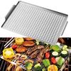 Tigăi grătar robuste din oțel inoxidabil pentru grătar exterior cu design perforat și mânere, ideale pentru legume, pește, carne