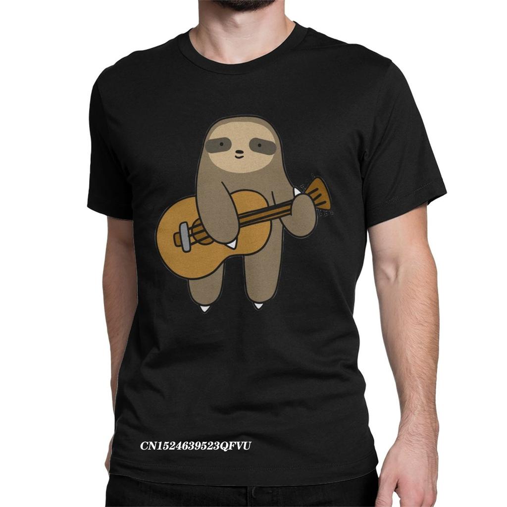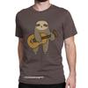 Guitar Sloth Cute Tops T Shirts Mens Cotton Novelty Tee Shirt Round Neck Guitarist Animal Tees Harajuku Tops Gift Idea