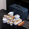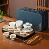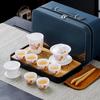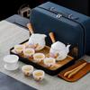 Chinese tea set, white jade tea set, Kung Fu tea set, Kung Fu tea set, 6 cups portable ceramic tea set large