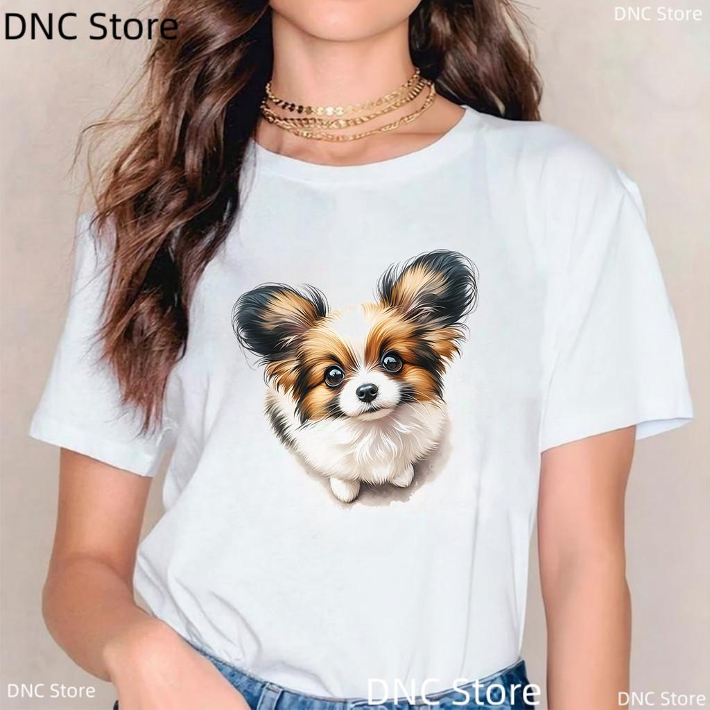 Women'S T-Shirt Funny Papillon Dog Print T-Shirt Animal Lover Tshirt Harajuku Style Summer Fashion Female T-Shirt Casual Shirt