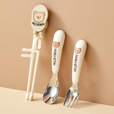 Set portabil de veselă pentru copii din oțel inoxidabil 316, ustensile drăguțe pentru hrănire, lingură, furculiță, bețișoare de învățare, tacâmuri pentru copii
