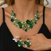 Set Colier Cercei Floare European și American, Bijuterii Rochie Gemă Cristal Colorat, Potrivire Femei Banchet Nupțial