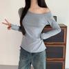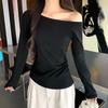 Design Nou-senzorial Culoare Solidă Umeri Goi Mânecă Lungă Tricou pentru Femei În Primăvară Nișă, Unic Umeri Goi Top Dorință Pură