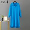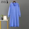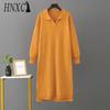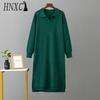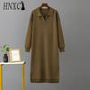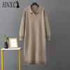 HNXC Rochii de toamnă-iarnă tricotate largi pentru femei, cu guler polo de culoare solidă, cu căptușeală