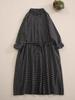 Rochie nouă de primăvară 2025 din bumbac și in carouri cu mâneci lungi pentru femei, lejeră și versatilă, cu talie șnur și fustă cămașă subțire