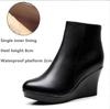 Cizme Wedge cu Platformă pentru Femei Toamnă Iarnă Negre Cizme de Gleznă pentru Femei Tocuri Înalte Pantofi din Piele Naturală cu Fermoar