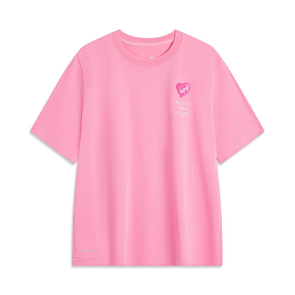 LiNing Dopamine Sports Fashion Quick-Dry Cool Ice Silk Sports Casual Round Neck Solid Color Printed T-Shirt Women tops Morning-Light-Pink AHSU658-2