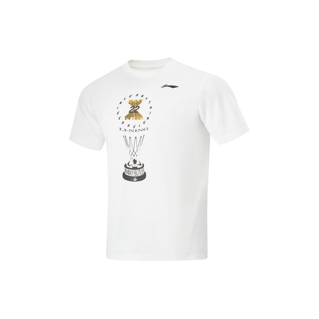 Li Ning Printed Pattern Crew Neck Pullover Short Sleeve T-Shirt Men Tops Standard-White AHSU403-2