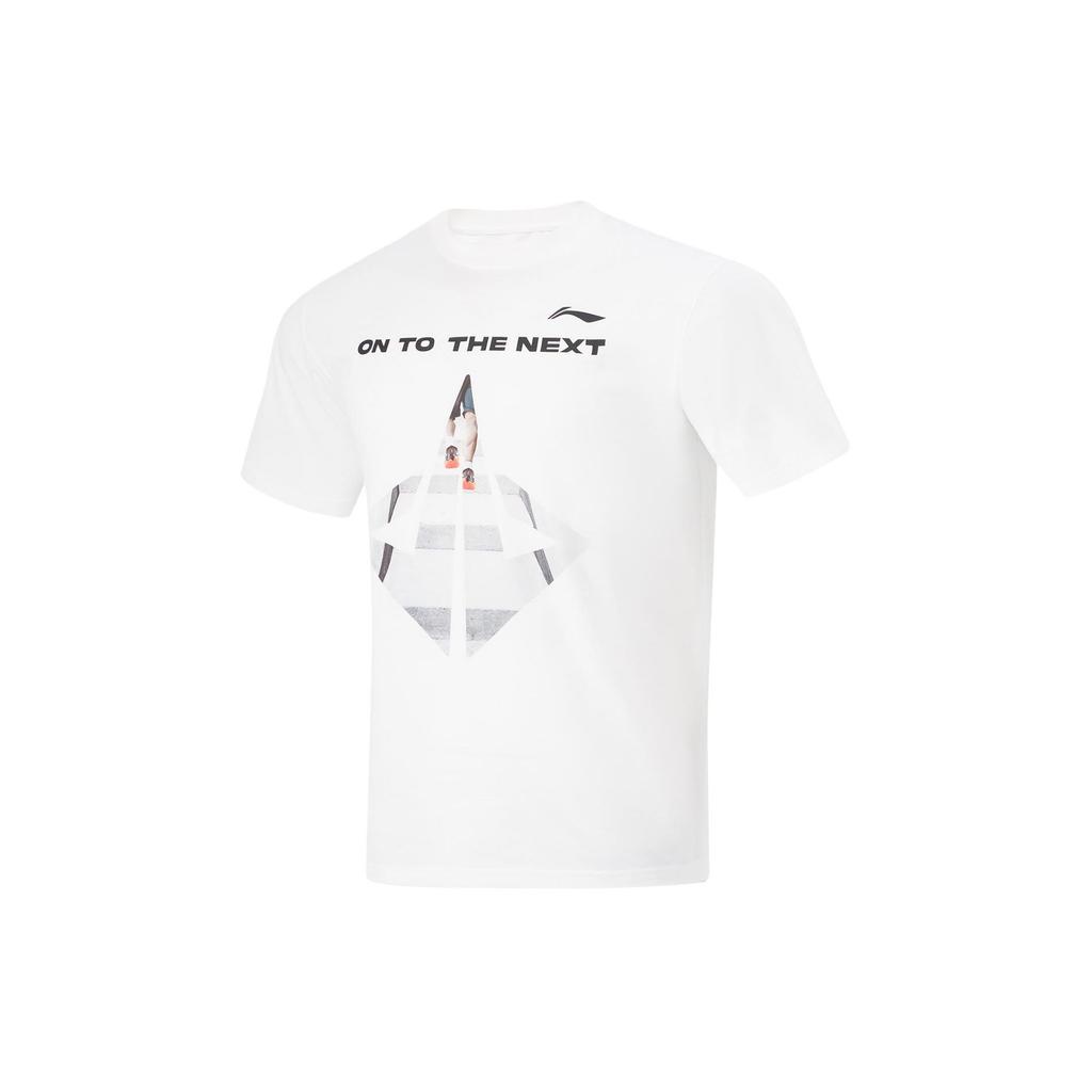 Li Ning Logo Print Simple Round Neck Short Sleeve T-Shirt Men Tops Standard-White AHSU407-2