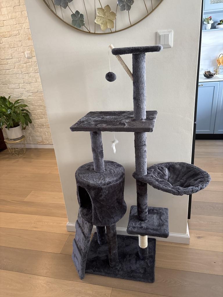 Arbore mare pentru pisici cu cadru de cățărat, pat special, platformă de sărit și stâlpi de sisal