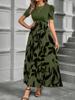 Rochie cu gât rotund și blocuri de culoare, cu mâneci scurte, cu imprimeu floral, rochii A-line, toamnă, elegantă, de petrecere, robă