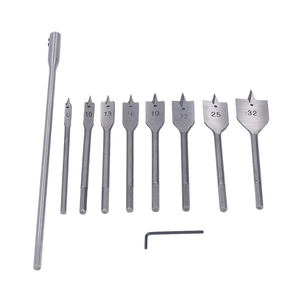 Set 10 Bucăți Burghie pentru Lemn Oțel Carbon Ridicat 8 Dimensiuni Coadă 1/4 inch Burghie Spadă pentru Prelucrarea Lemnului