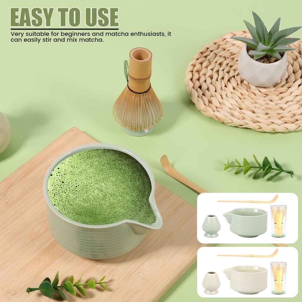 Set 4 Piese Instrumente Ceai Matcha Set Tel Matcha Kit Preparare Ceai Stil Japonez cu Linguriță Suport Tel Bol pentru Începători Entuziaști