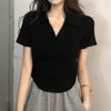 Short-sleeved Lapel Top, V-neck Pullover