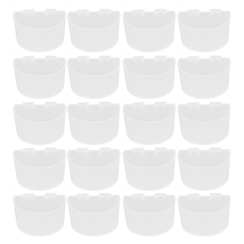 20 Bucăți Bol pentru Mâncare Păsări Plastic Papagal Apă Hrănire Cupă Colivie Hrănitor Jgheab Set Kit Alb 11x6cm /