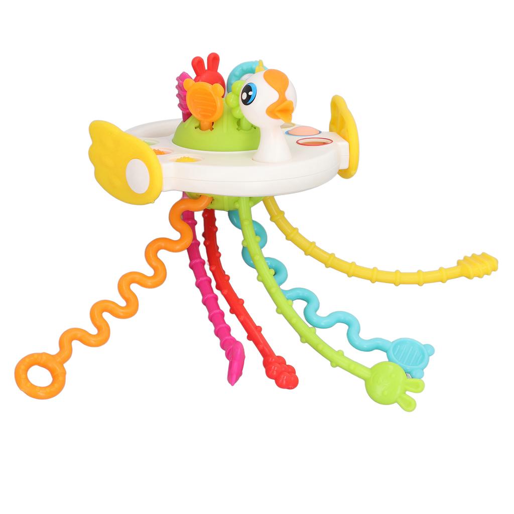 Jucărie pentru copii mici cu șnur de tras, educativă, liniștitoare, în formă de rață, multifuncțională, jucărie cu șnur de tras, albă