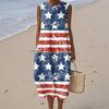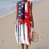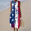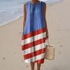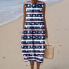 Rochie de damă la modă casual fără mâneci cu gât rotund, imprimată cu Ziua Independenței, elegantă, cu temperament