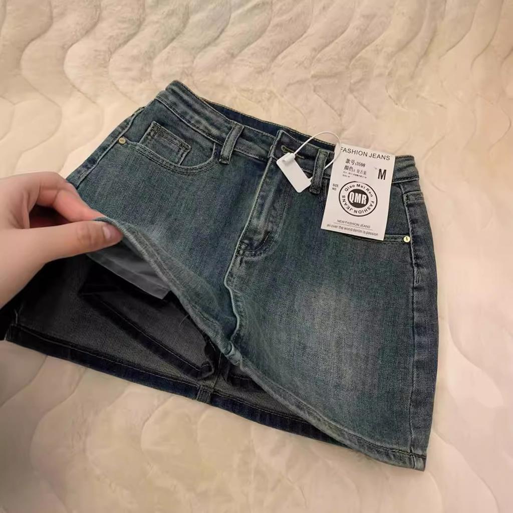 Retro Denim Short Skirt for Women In Summer New High-waisted Slim A-line Skirt Anti-exposure Hip-covering Skirt