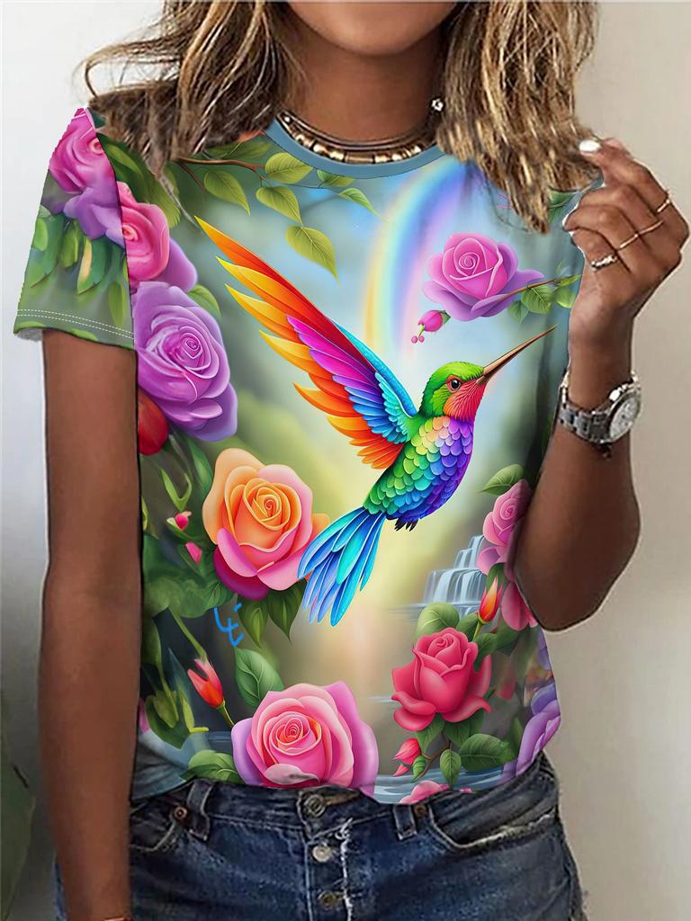 Spring and summer casual round neck short sleeved top, women's clothing
