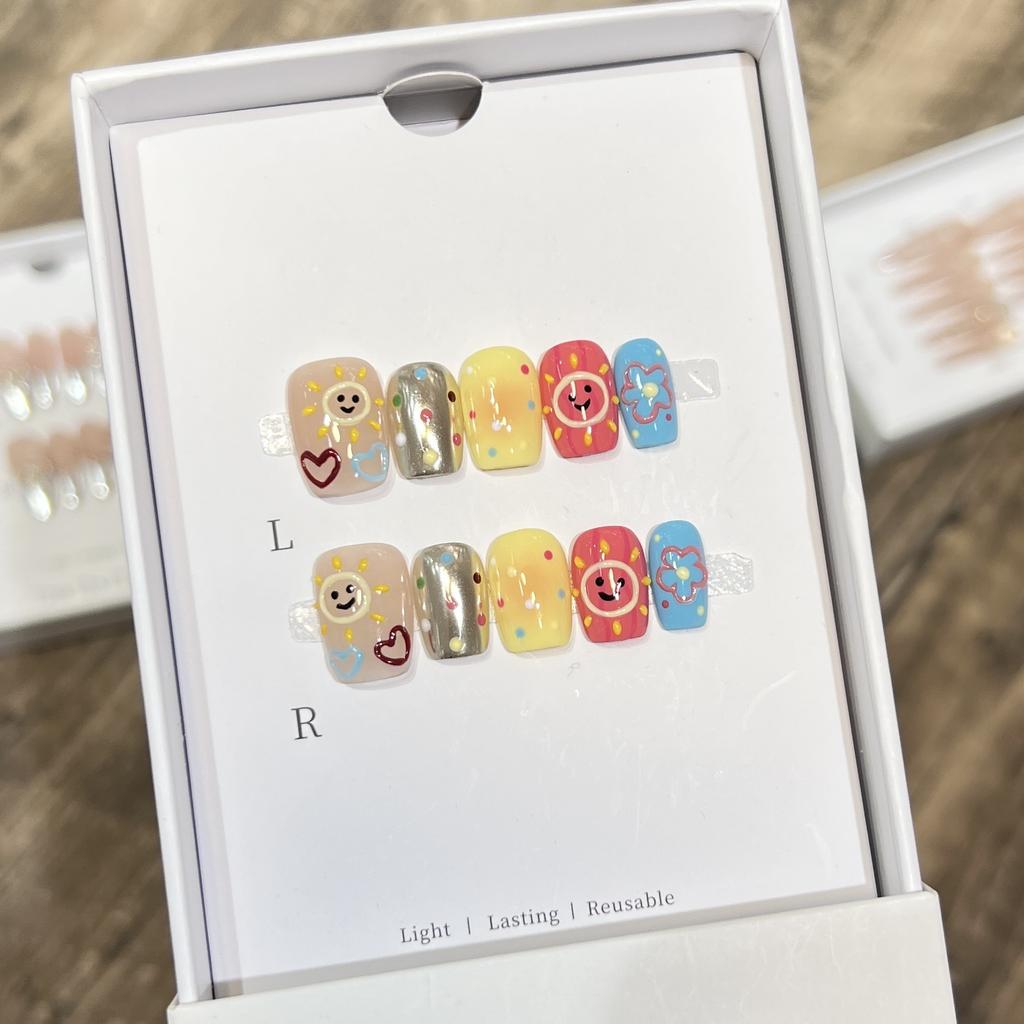 Dopamine Cute Hand-painted Cartoon Manicure Short Wear Nail Pure Handmade