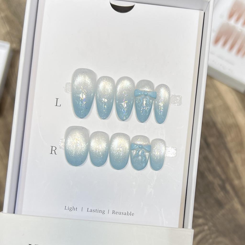 Handmade Armor-piercing and Summer Fresh Manicure Cute Bow French Daily Short Style Removable