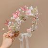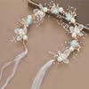 Golden Fairy Leaf Flower Pearl Headband - Elegant European Crown for Girls' Weddings