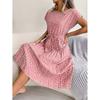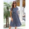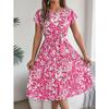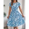 Femei Primavara Vara Maneca Scurta Talie Inalta Rochie Chic Moda Floral Plis A Line Rochie Lunga