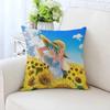 Față de pernă decorativă de lux pentru casă, pentru mașină, sufragerie, canapea, cu model Fata cu floarea-soarelui