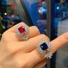 Luxury high carbon diamond ice flower cut engagement ring female silver dark blue zircon irregular opening ring party gift