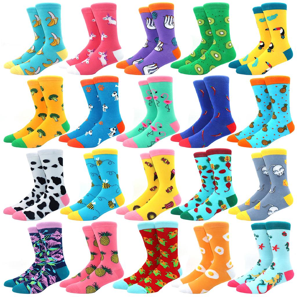 1 Pair of Fun Men Socks Casual Cartoon Fruit Banana Flamingo Lemon Egg Sloth Pizza Happy Harajuku Skateboard Socks