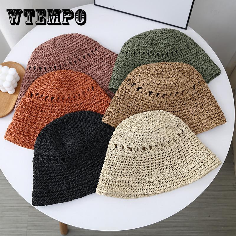 Summer Bucket Hat Straw Hat Versatile Japanese Woven Bucket Hat Beach Sun Protection Hat Women