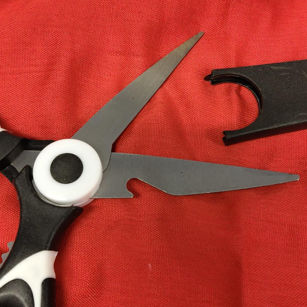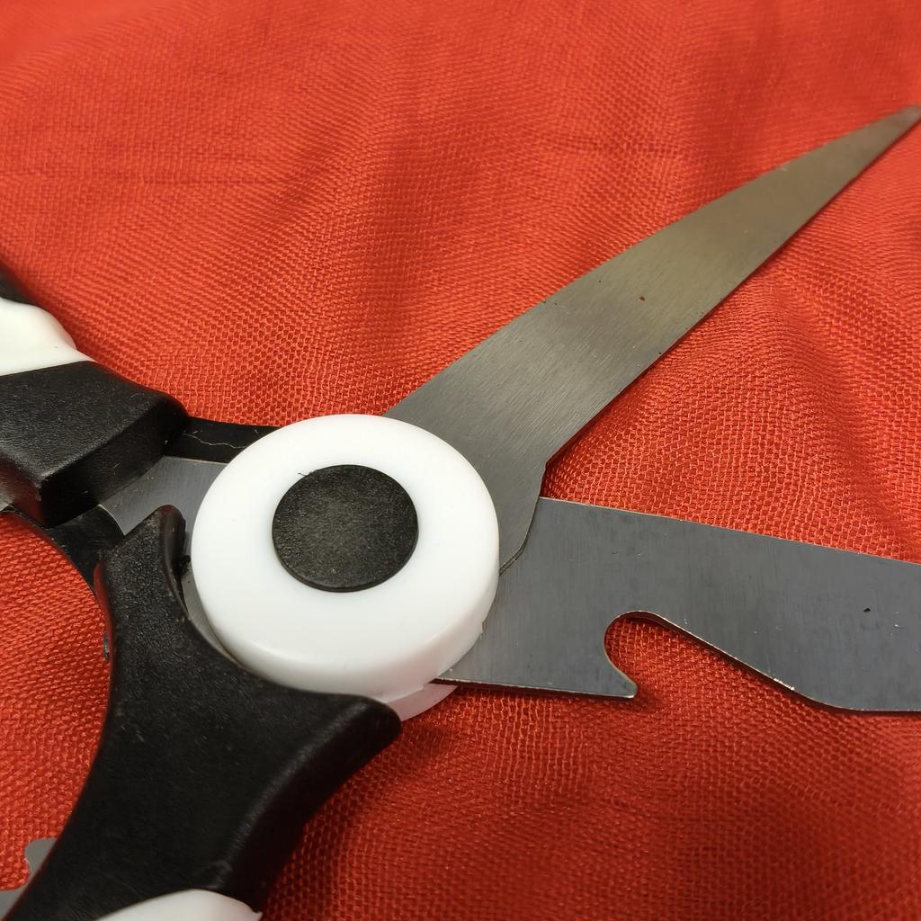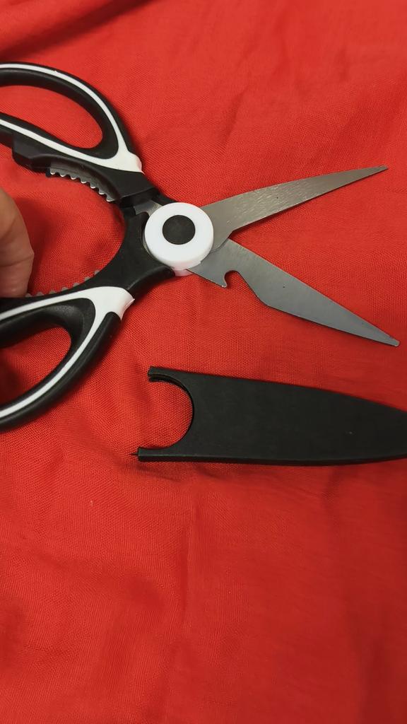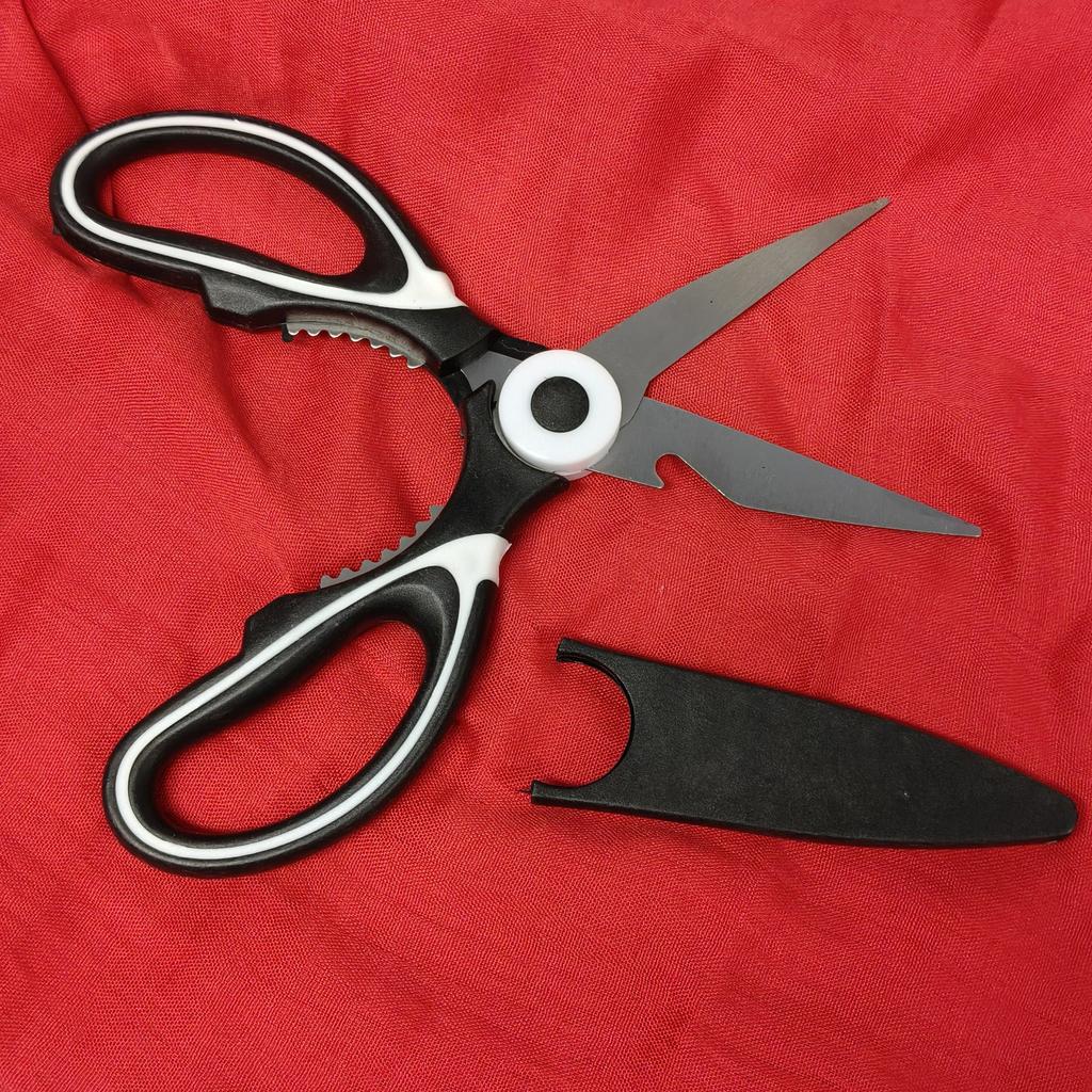 FOARFECE DE BUCĂTĂRIE un instrument indispensabil în bucătărie, acești foarfeci au și funcție de deschizător de sticle și spărgător de nuci. 3 instrumente într-unul 🤩 Sunt furnizate și cu o husă de plastic pentru a proteja lamele.. Mâner ergonomic din plastic și lame din oțel. Pachetul a ajuns în Italia cu expediere urmărită în 20 de zile. Ambalate în plic cu bule, au ajuns intacte Achiziție recomandată 👌