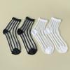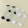 2 Pairs Women Heart Stripe Polka Dots Pattern Sheer Silk Socks Spring Summer Breathable Thin Transparent Crew Socks