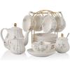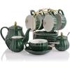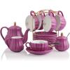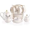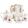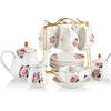 Seturi de Ceai din Porțelan Seria Regală Britanică, Căni de 8 OZ și Serviciu de Farfurii pentru 6 persoane, cu Ceainic, Zaharniță, Cremier, Lingurițe
