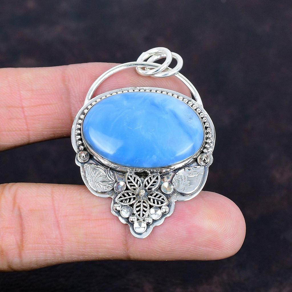Pandantiv opal albastru Owyhee lucrat manual, pandantiv original cu piatră prețioasă, pandantiv din argint sterling 925, bijuterii antice, pandantiv delicat cu floare, cadouri de nuntă