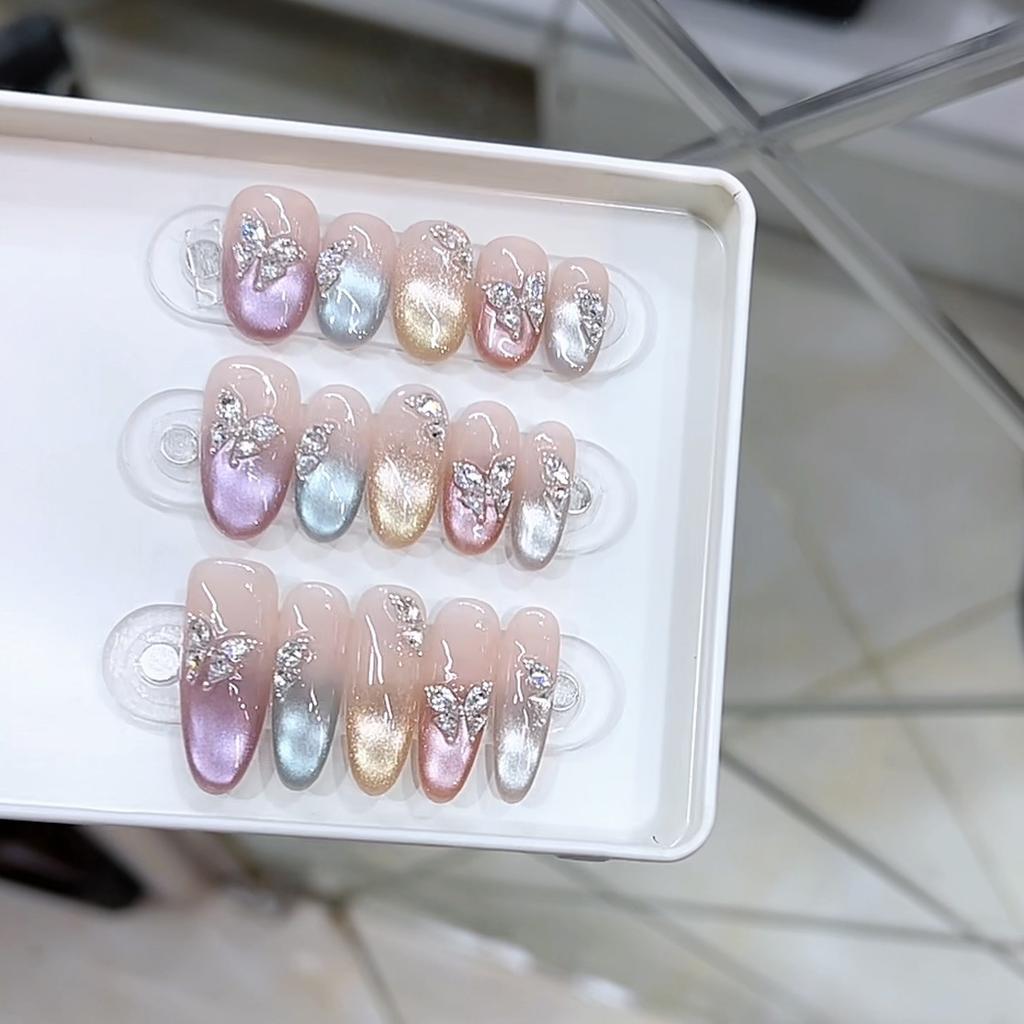 Armură țesută manual Nou Fluture colorat Ochi de pisică colorați Zircon Diamant Ochi de pisică Autocolant pentru manichiură
