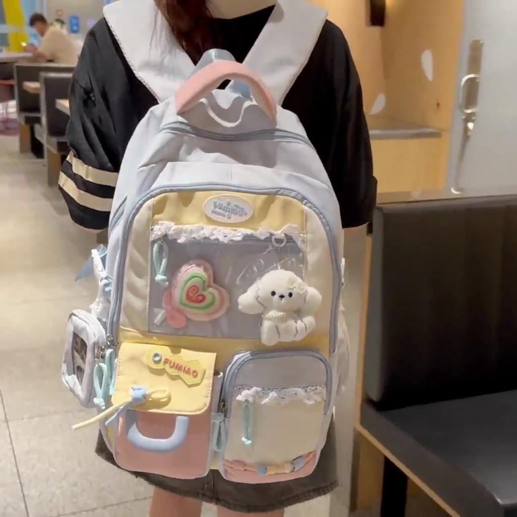 Rucsac Școlar Studențesc Stil Colegial Capacitate Mare Rucsac cu Compartimente Multiple pentru Fete cu Portofel pentru Monede