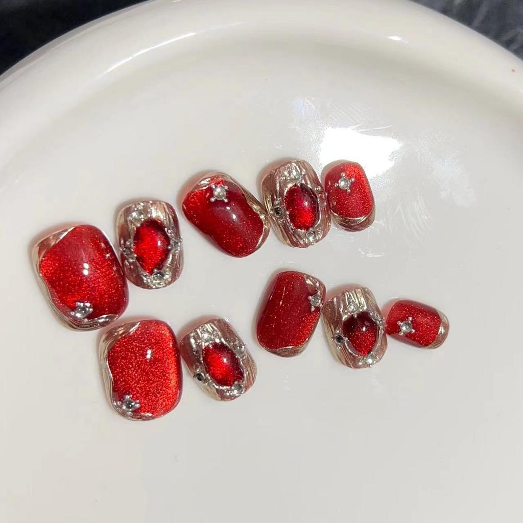 Wearing Nail Handmade Nail Art Finished Fake Nail Patch Popular Red Light Bulb Cat Eye Buchela