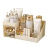 Grilaje de depozitare personalizate pentru sticle, borcane, pensule, loțiuni, fixative de păr, parfumuri, cosmetice și dischete de bumbac. Păstrați blatul sau dormitorul ordonat fără a sacrifica spațiul cu acest element esențial pentru măsuța de toaletă.