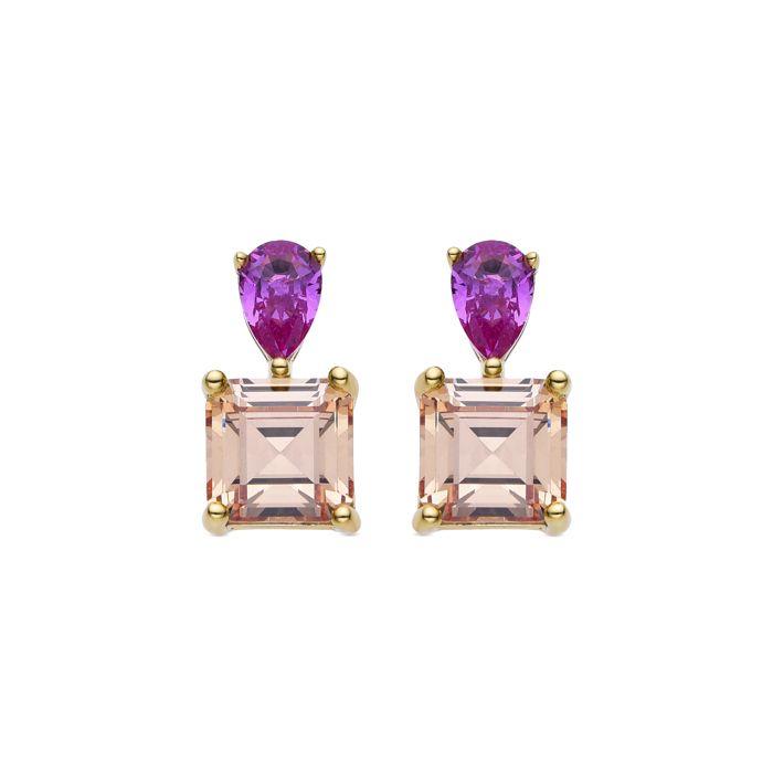 Boucles d'oreilles Luxenter en argent 925 et zircon multicolore finies en or jaune 18k - Codua